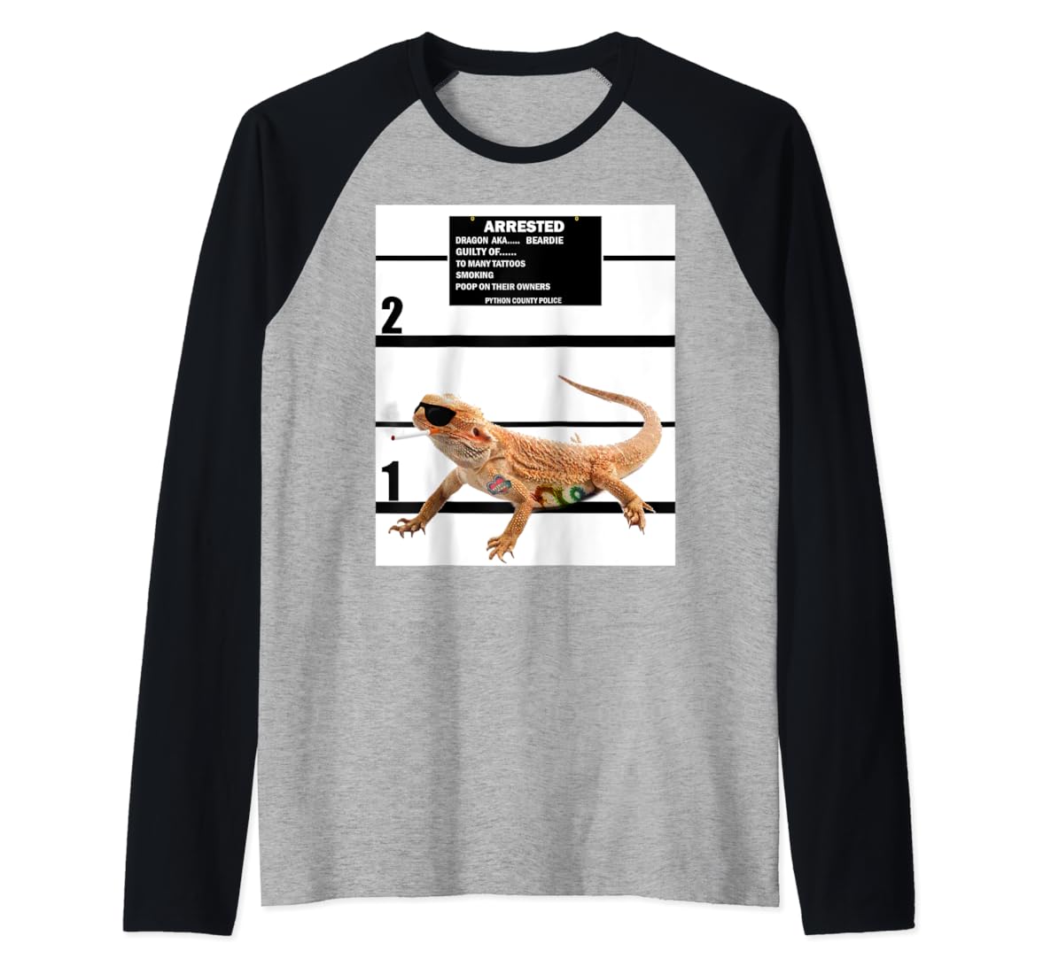 Amazon Com Funny Bearded Dragon Tattoo Smoking Humor Mugshot Gift Raglan Baseball Tee Clothing Shoes Jewelry